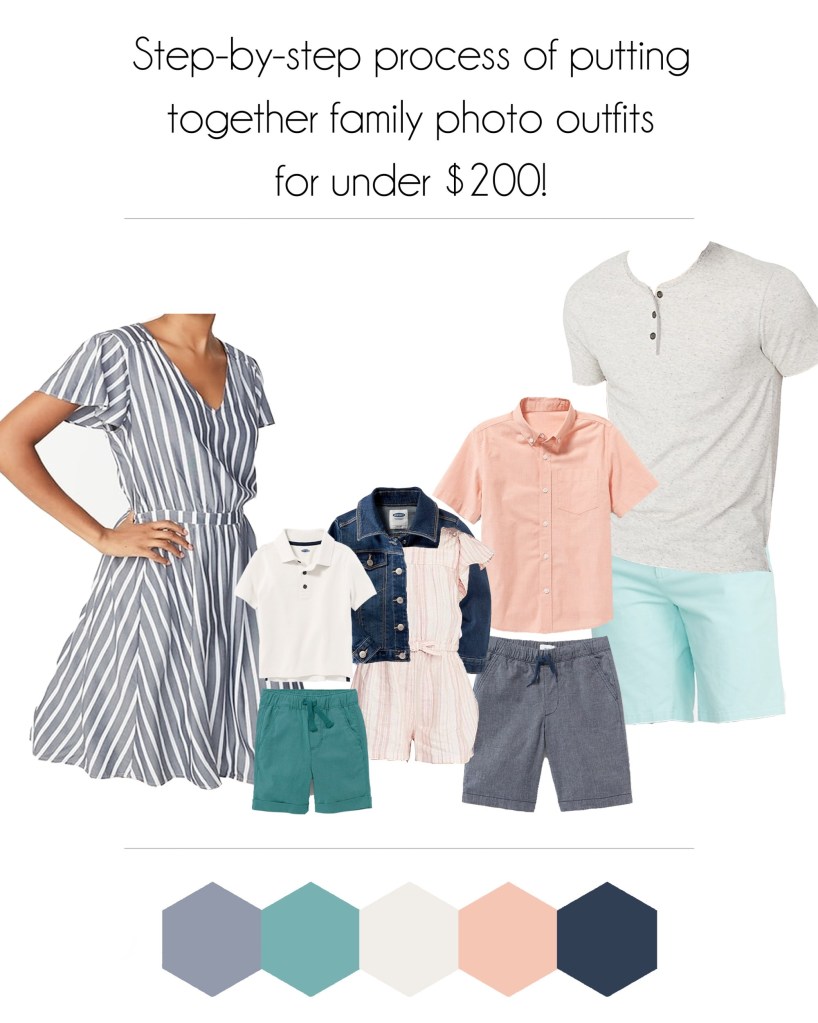 My first step was to head to Pinterest for inspiration. Having visuals always helps me put everything together! Most of my outfits for pictures are inspired by Pinterest in some way! Whether it’s an outfit/piece (usually for me! 😉), a specific color to build on, or even just a vibe I like! From there I found my color schemes. I wanted to make sure I had a few colors to work with so that finding cohesive pieces for all 5 outfits wasn’t AS challenging. Having those colors to refer back to helped keep my search organized and focused. For this first set, I wanted a brighter color scheme more geared for spring/summer.