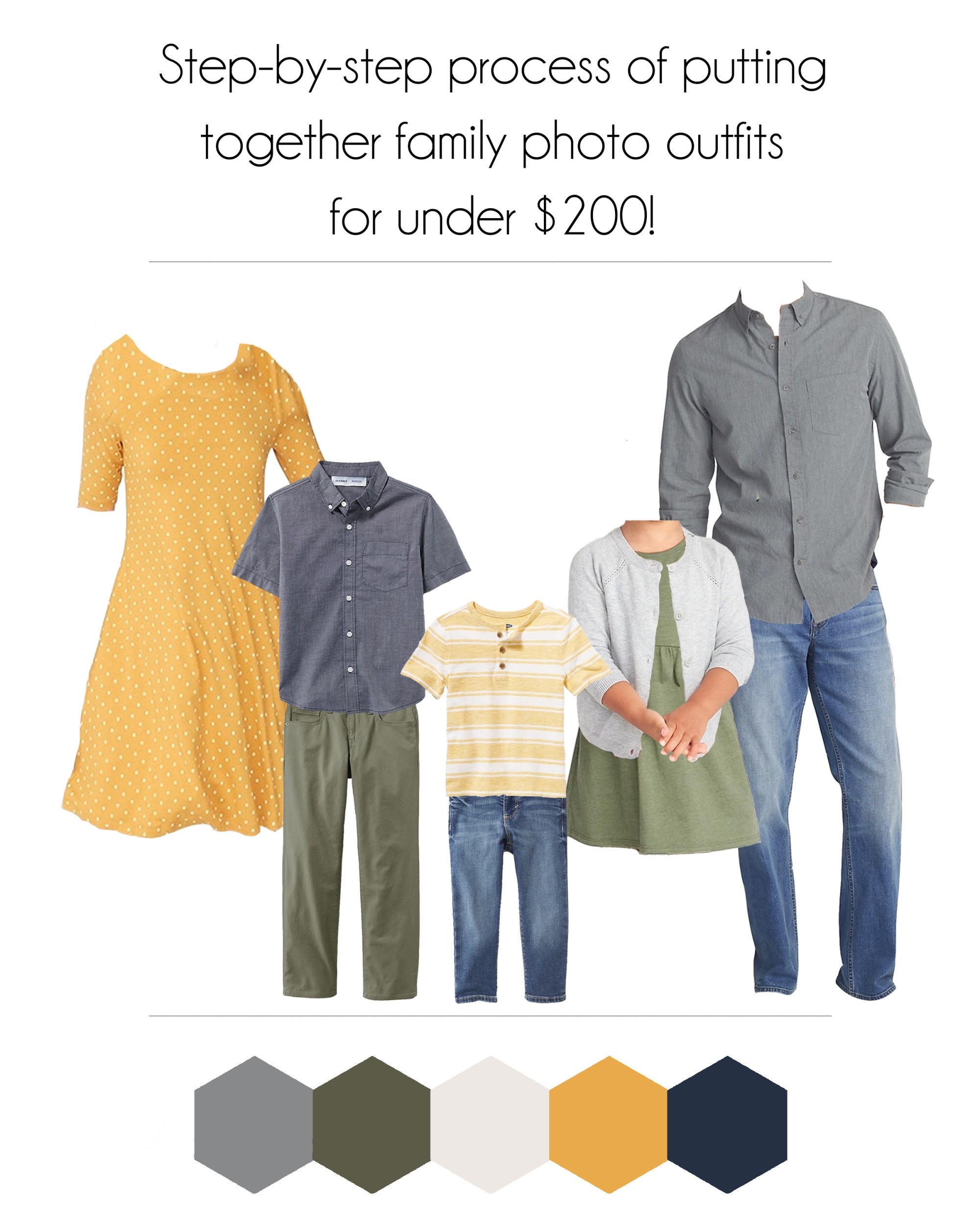 When we first started this, Alex took a poll on IG and asked her followers to choose a retailer and budget for me. Old Navy was the most common answer, and they set my budget at $200. To be honest, I was worried that I wouldn’t be able to pull it off. Having 5 people to plan outfits for is a task, but even more so at ONE store and with a set budget. I was pleasantly surprised at how easy and fun it was to do though!