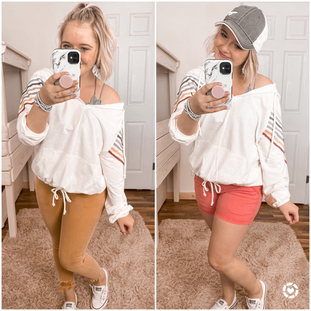 This one is a little out of my comfort zone (see #5. 😉) but I am loving these colors! It’s one of those sweaters that you find yourself drawn to every time it’s clean. I know the shorts and sweater look isn’t for everyone, but this Wyoming girl is a fan!