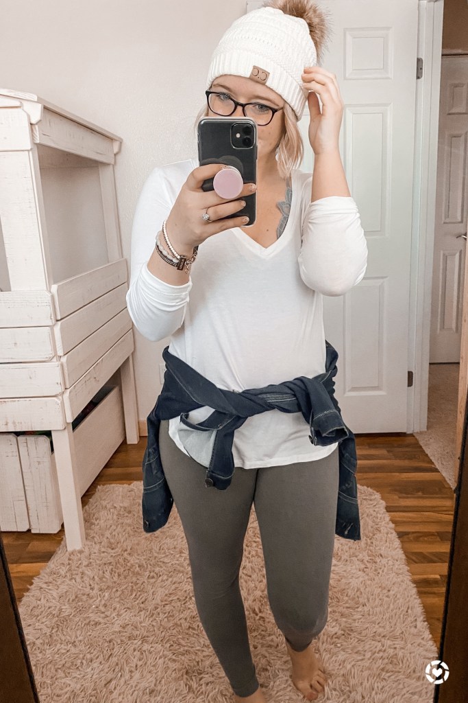 Top– similar HERE // Jegging- similar HERE // Booties // Hat // Cross Bag // Necklace // Bracelet