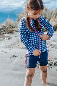 Our favorite brand for rash guards and kids suits in general is SwimZip. While they kindly gifted us the kids swimwear for this summer, we have used them in the past and always had a great experience! I am a big fan of the piece of mind I get knowing that their suits have UPF 50+ protection. Basically wherever the swimsuit covers, they’re protected- meaning less sunscreen applying for mom and dad.