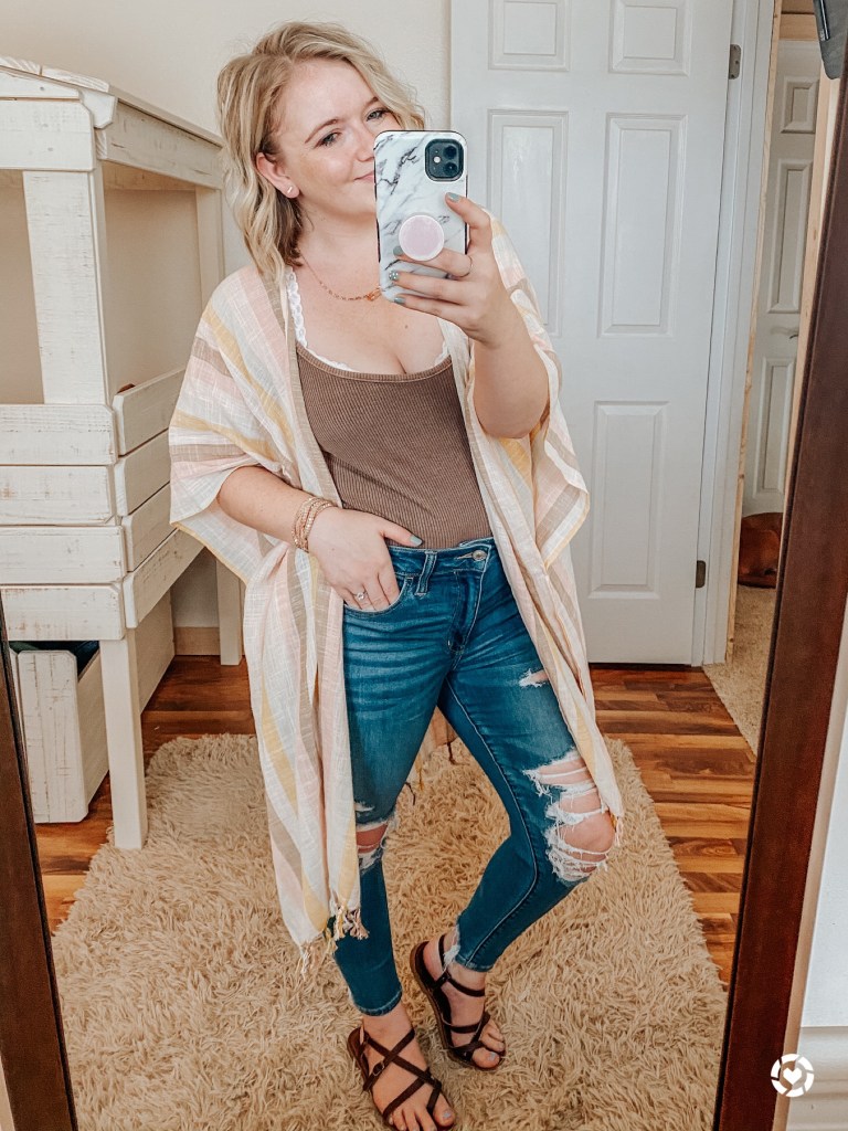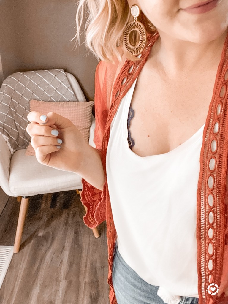 Kimono– might be sold out, similar HERE // Tank Top- similar HERE // Shorts // Bralette // Earrings
